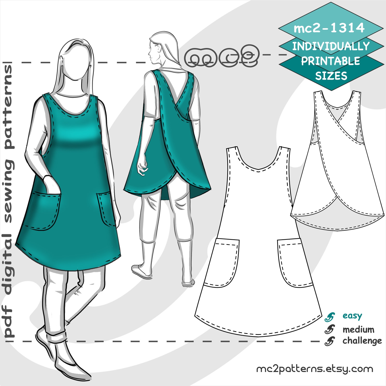 S 4XL Cross back A line Apron Easy to make No lining Digital Sewing PDF Pattern For Women mc2patterns Mc2 1314 Etsy