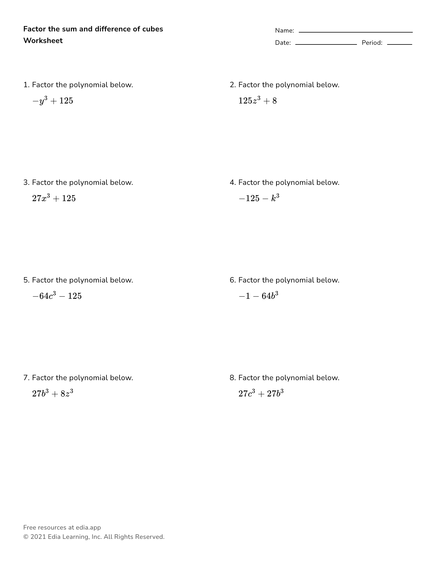 Factoring Polynomials Interactive Worksheet Live Worksheets Worksheets Library