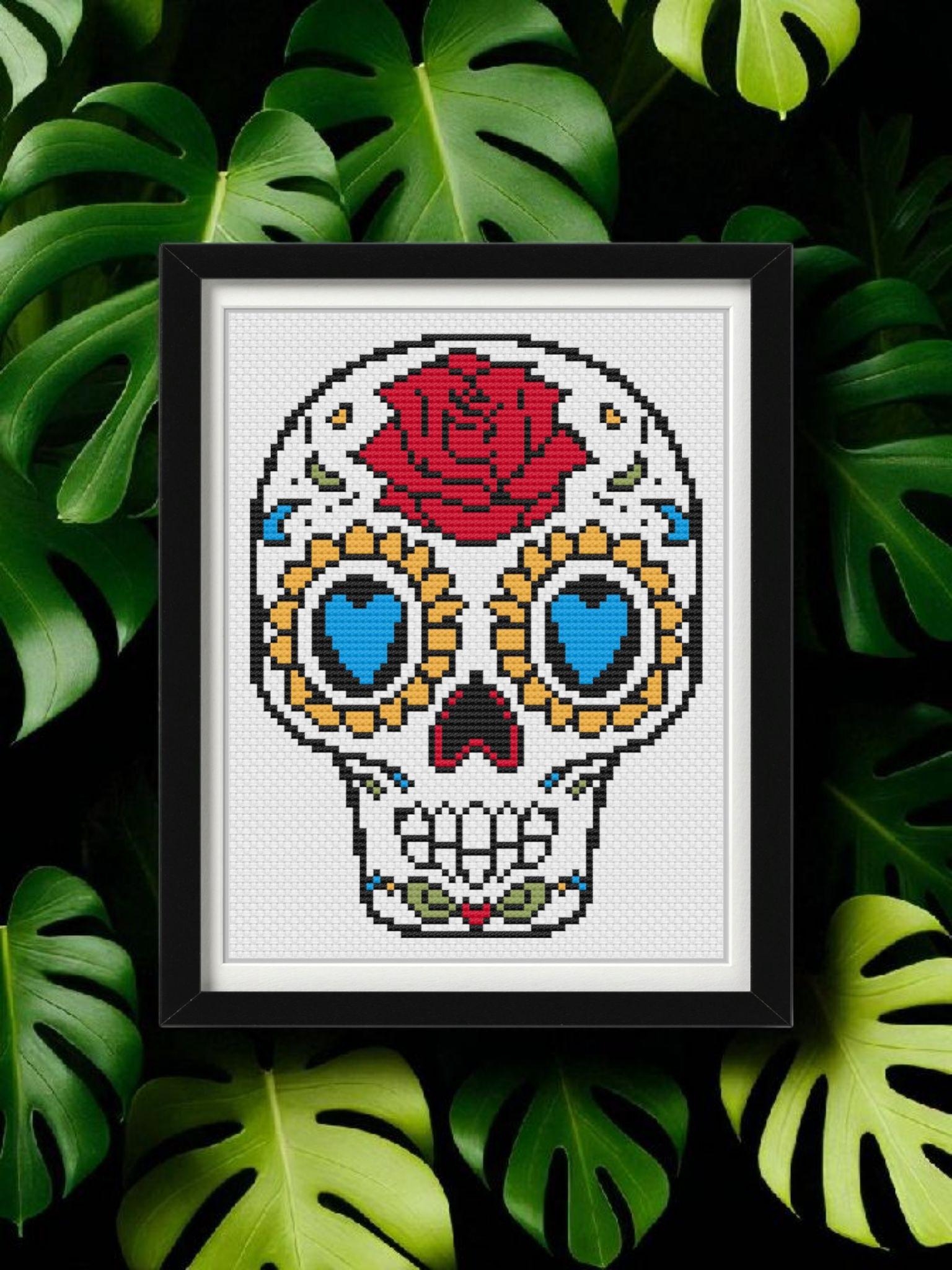 Sugar Skull Cross Stitch Pattern PDF Modern Dia De Los Muertos Embroidery Design Instant Digital Download Etsy