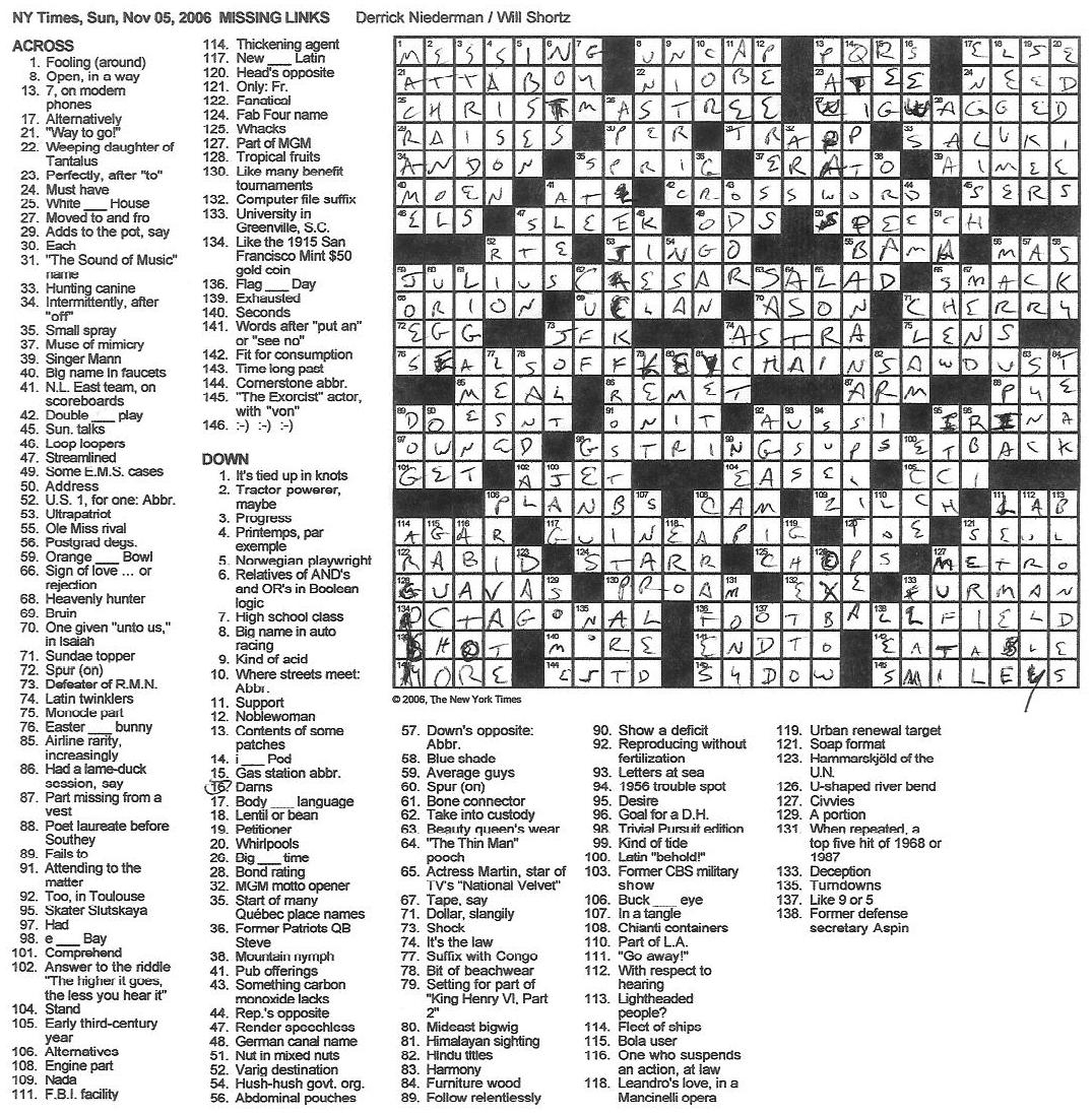 Rex Parker Does The NYT Crossword Puzzle SUNDAY Nov 5 2006 Derrick Niederman